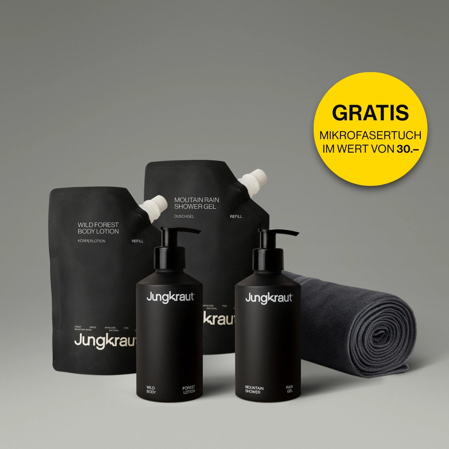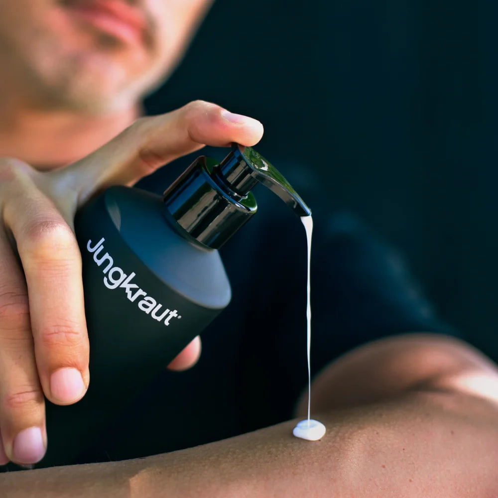 Because Jungkraut can do more and isn't standard. Our body care formulations are unique and precisely tailored to the needs of men's skin. We use innovative active ingredients with a purity and concentration found only in genuine premium care. Our skin care for men is an investment in your skin's health – with highly concentrated formulas, natural fragrances, and maximum effectiveness without fillers. We produce in small batches in Switzerland, focusing on freshness, tolerability, and the most sustainable packaging possible. Instead of cheap plastic, we use durable aluminum – functional, high-quality, and refillable. Added to this is direct customer contact, honest support, and a commitment to quality that lasts. In short: Jungkraut isn't a discount product, but rather care with a sense of purpose – for men who know what healthy skin is worth to them.