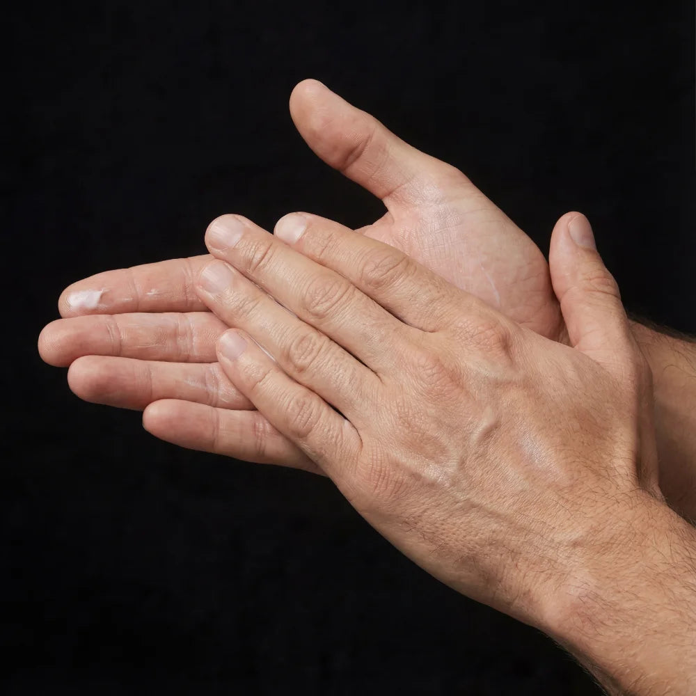 The palms of your hands can barely absorb any product because they have very few sebaceous glands. If you apply the cream to the back of your hand and rub it back-to-back, it will be absorbed faster and more completely – without impairing your grip or leaving a greasy residue.