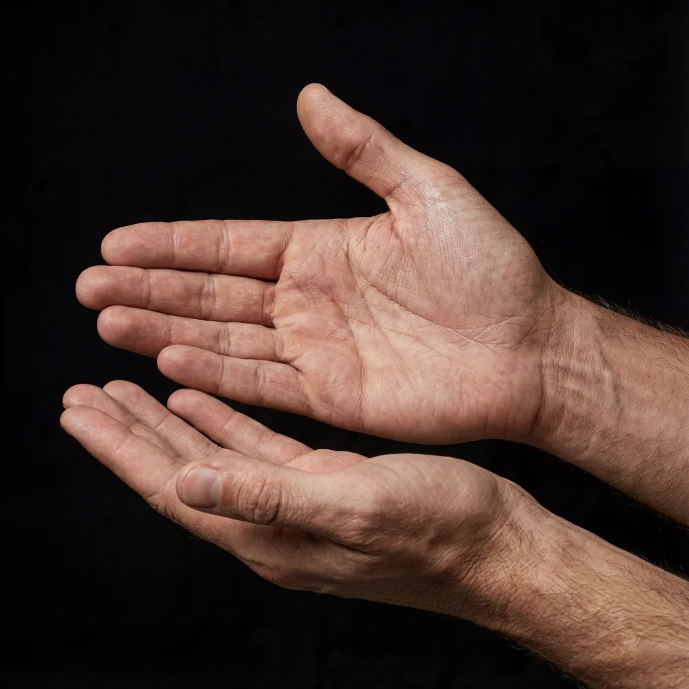 Ectoin protects cells from UV stress, binds water and stabilizes skin structures – a crucial advantage for men's hands exposed to cold, dryness and mechanical friction.